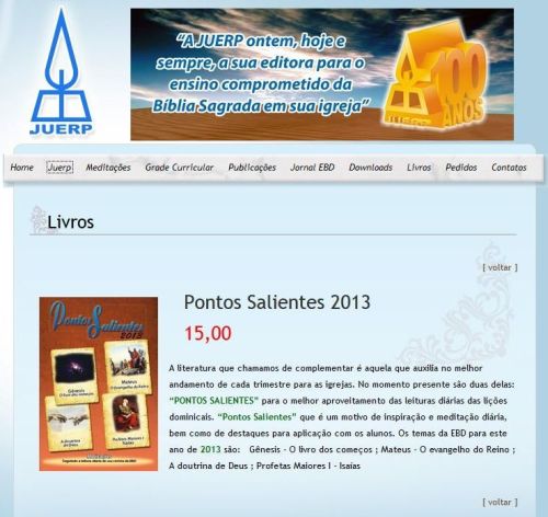Enquanto isso, a JUERP continua existindo como editora da CBB, com o estoque remanescente do livro aqui em pauta sendo vendido em seu site, conforme imagem abaixo extraída do site da JUERP à página http://www.juerp.org.br/produto.php?id_produto=220. (online em 21/04/2014)
